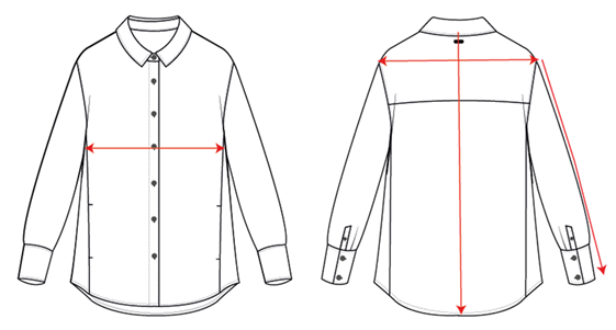 | SLEEVE LENGTH | Shoulder point to sleeve hem - along sleeve fold |