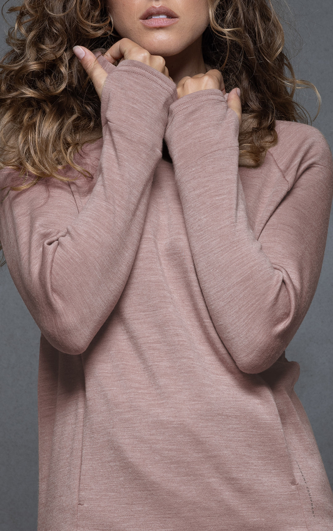 • Hood crosses over at front neck